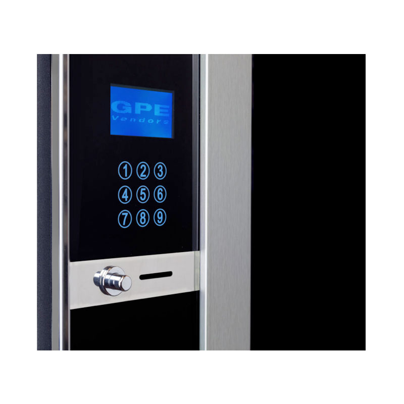 Even though the ‘Slimline’ machine is only 72cm wide, a wide range of crisps, confectionery, cakes, biscuits, cans and bottles can be vended thanks to the 7 tray capacity.