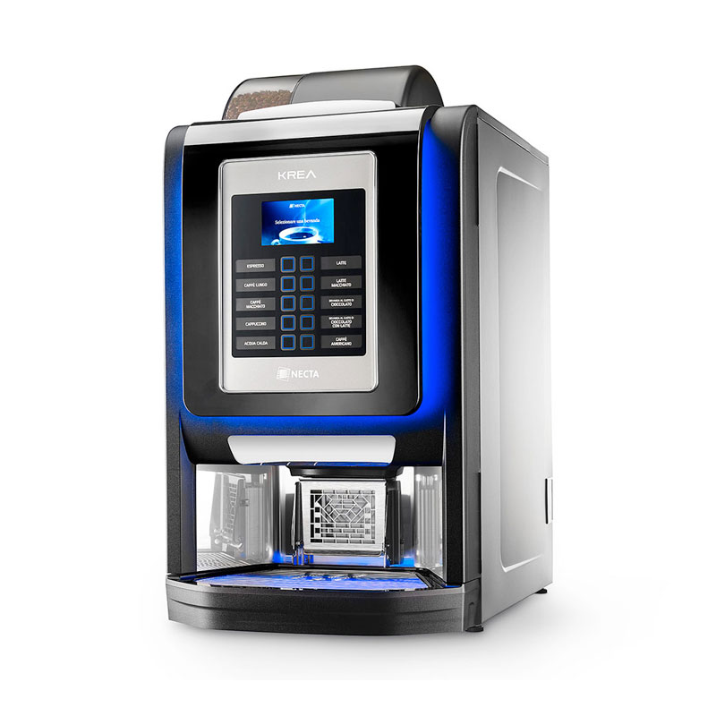 The Prime has the same appealing design as the Krea Touch with different colour lighting options, chrome frames and enhanced vend port area. The key difference is that the Prime has a simple push button keypad which makes the drink making process easy and intuitive. This makes the Krea Prime ideal for environments where users might be unfamiliar with how to use this type of fresh bean coffee machine.